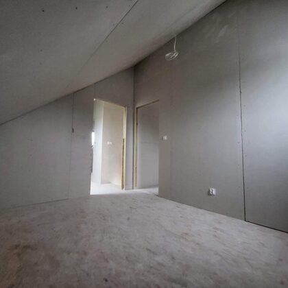 (8,5m x 6m) sypialnia + łazienka + pom. gospodarcze + salon z aneksem kuchennym + poddasze: łazienka+ 3 sypialnie)