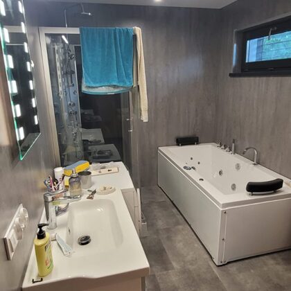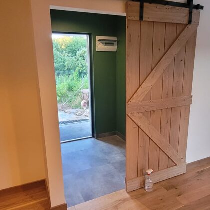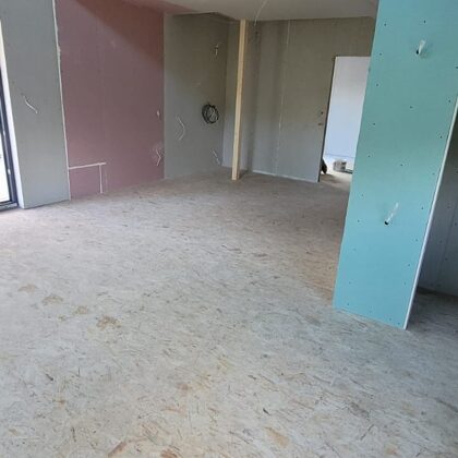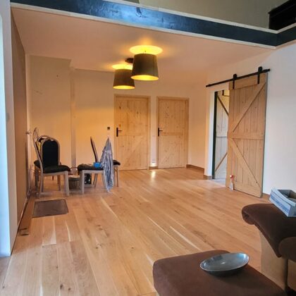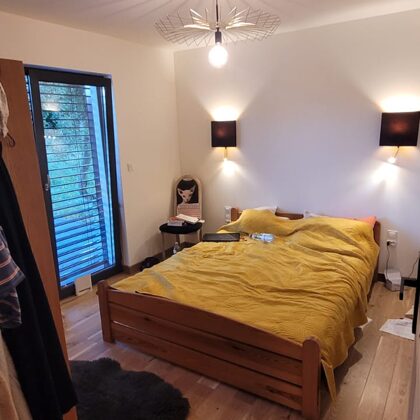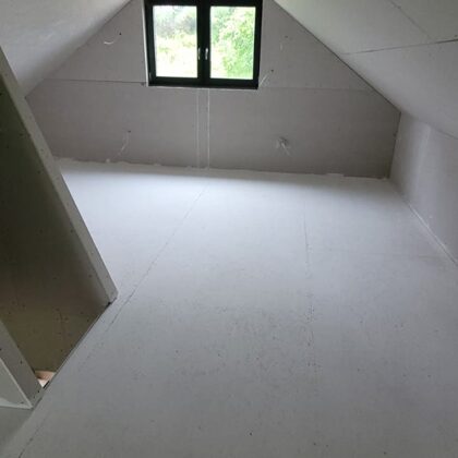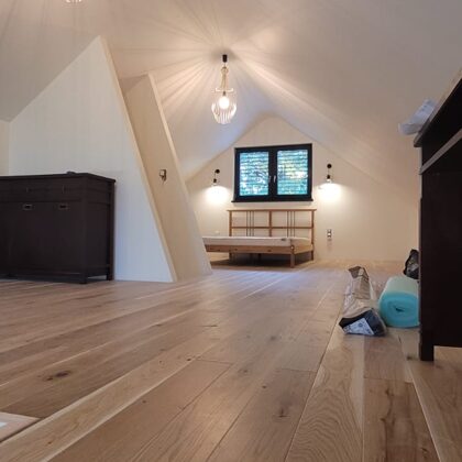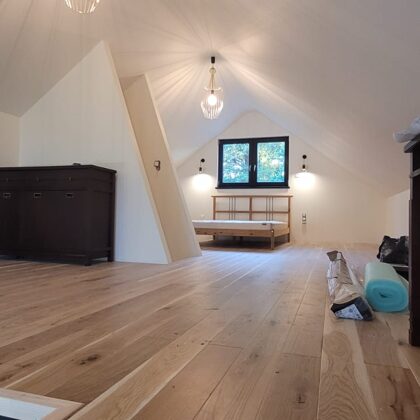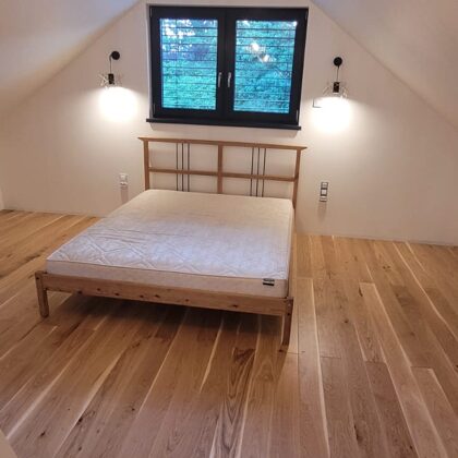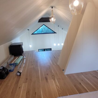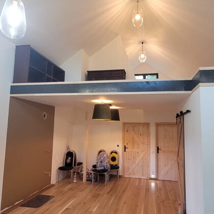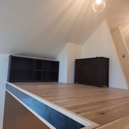 (11,6m x6m) Salon z aneksem kuchennym + sypialnia + łazienka + antresola